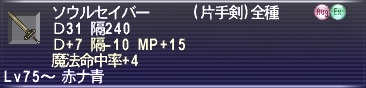 なんだかんだで青魔道士用のメイジャン片手剣魔命ルートのソウルセイバー(2本目)もここまで育ちました。